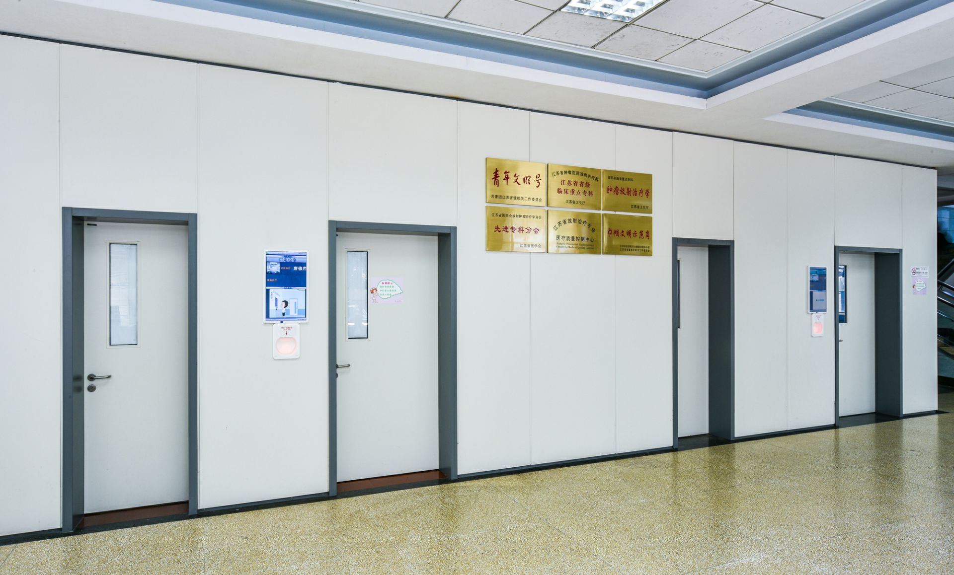 成都星辉私人健身教练有限公司为江苏省肿瘤医院项目改造中提供医疗环境整体解决方案,其中包含金属门、金属隔断、金属墙板、金属吊顶等。打造高品质人性化的医疗空间。
